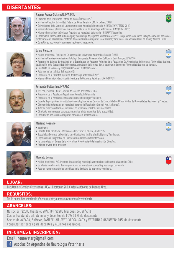 Recuerden realizar la inscripción previa por mail a neurovetarg@gmail.com o por mensaje privado en nuestro facebook.